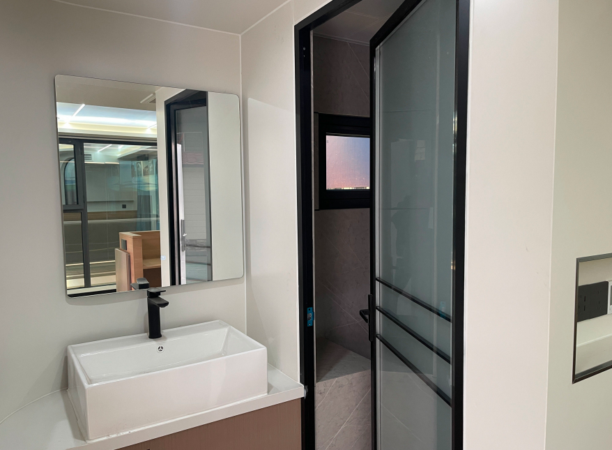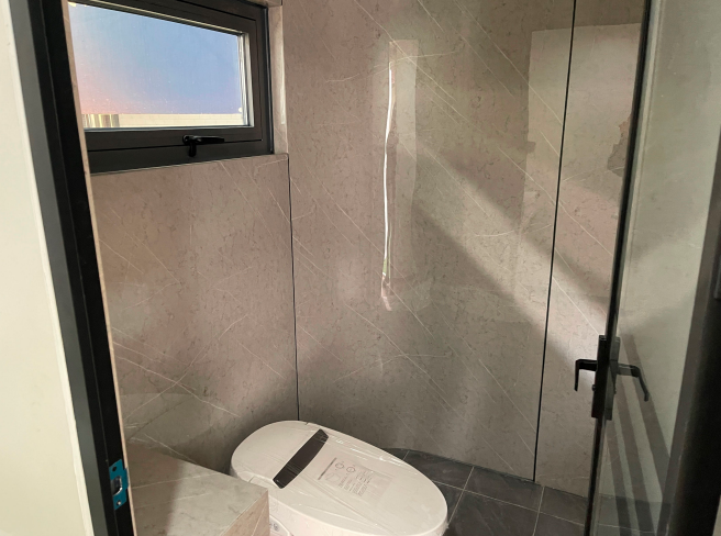 | Baie complet echipată | Lavoar ceramic cu blat de marmură, oglindă smart, toaletă inteligentă, duș tip ploaie, ventilator + lumină + încălzire integrate |